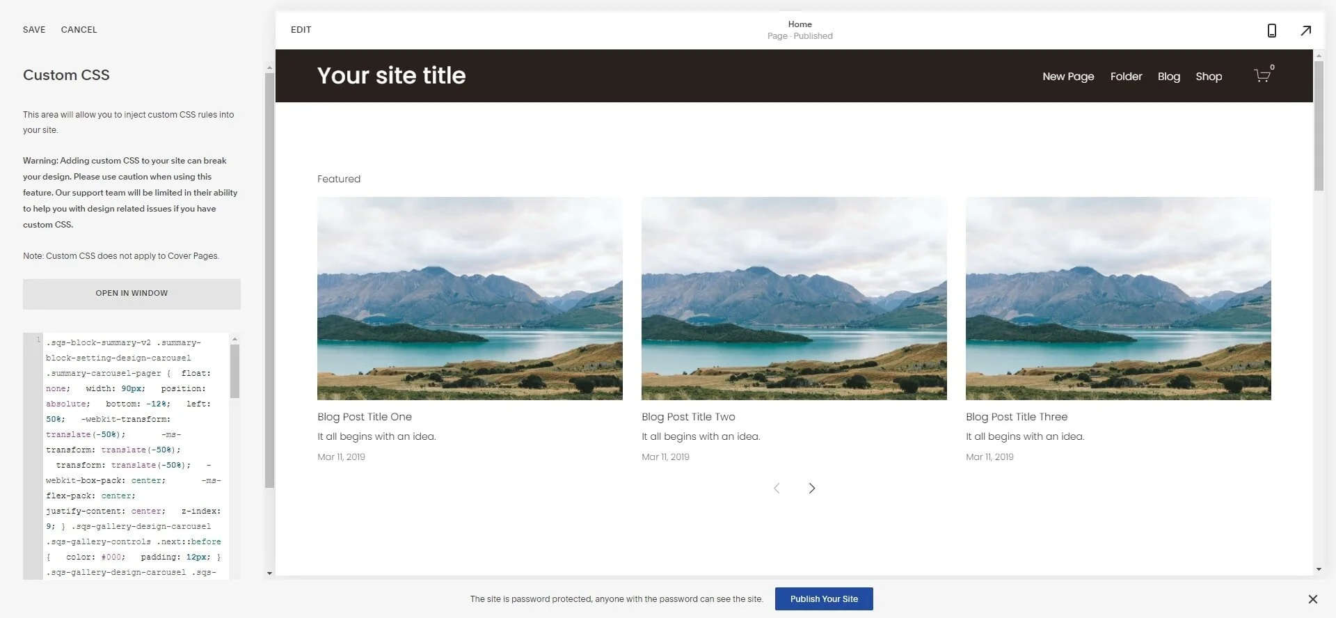 Well, you have come to the right place. Here are 3 simple custom CSS codes to change the style of the carousel arrows. This code is for Squarespace version 7.1 and we are using the Beaumont template.