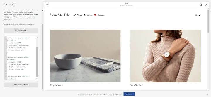 Design > Custom CSS