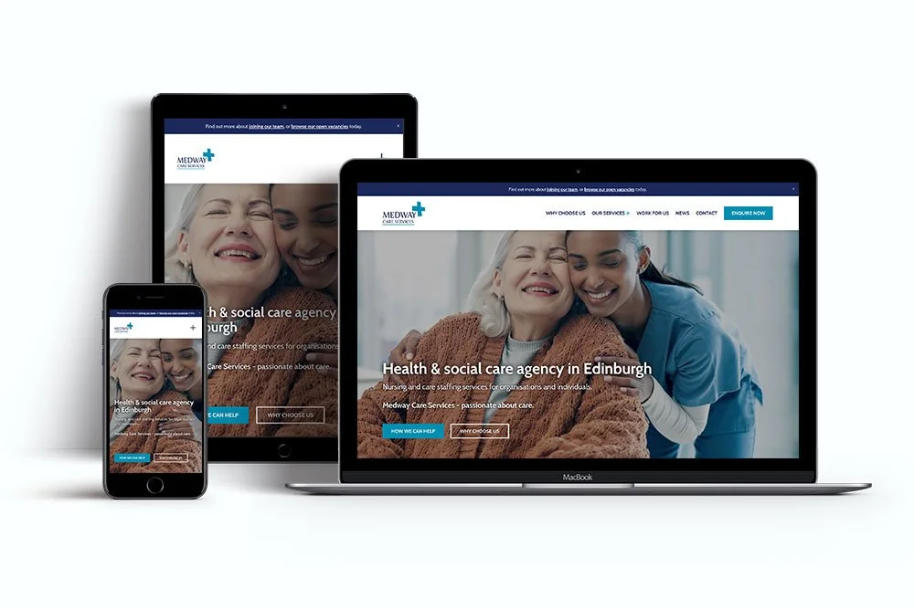 Medway Care Services is a vital agency in Edinburgh, but their previous website wasn't working hard enough for them. They needed to serve two key audiences at once: families looking for a trustworthy care provider for their loved ones, and healthcare professionals looking to join their team.